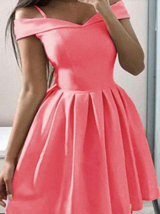Zipper Bandeau Pleated Spaghetti Straps Beautiful A-Line Mini Dress Ladies Elegant Dress