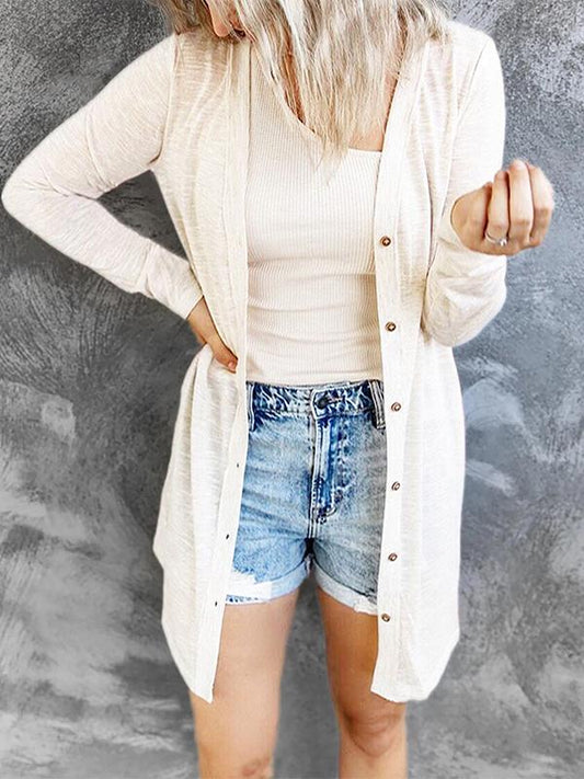 Solid Color Buttons Long Sleeve Ladies Fashion Cardigans