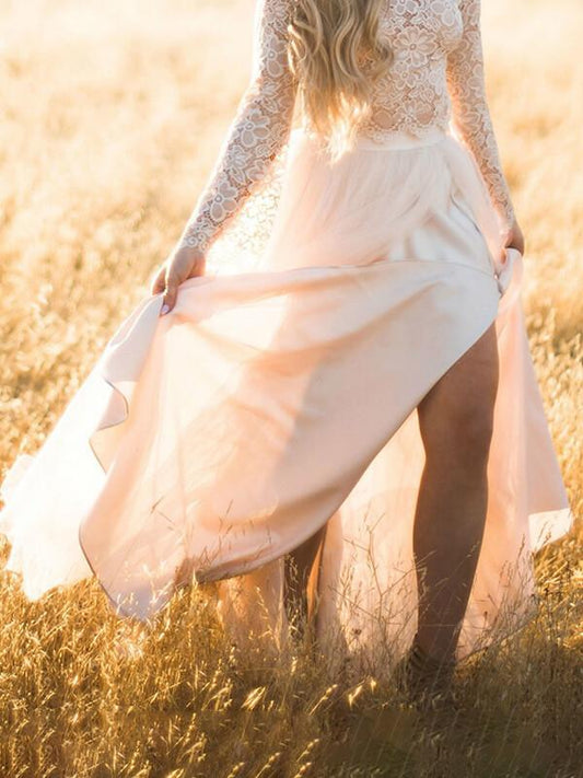 Mesh Deep V Backless Round Neck Long Sleeve Maxi Dresses Women Elegant Dress