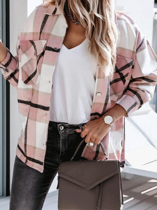 Checkered single-breasted turn-down collar long-sleeved ladies shirt jacket lumberjack jacket
