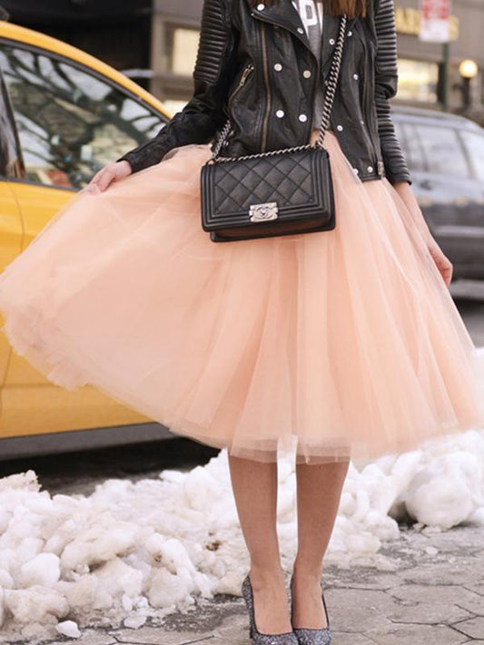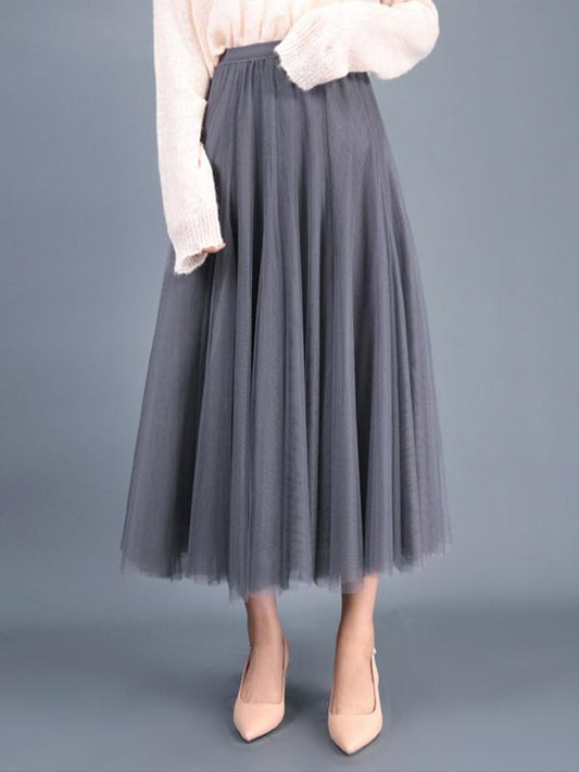 Seindeal Women's Fashion Midi Skirt Tulle Skirt High Waist Elegant Party