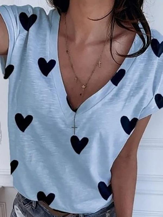 Heart Shape Oversize V-Neck Short Sleeve Women's T-Shirt