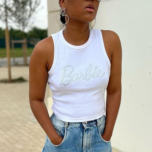 Cross Border Women's 2023 New Sleeveless Rhinestone Tank Top Pink
