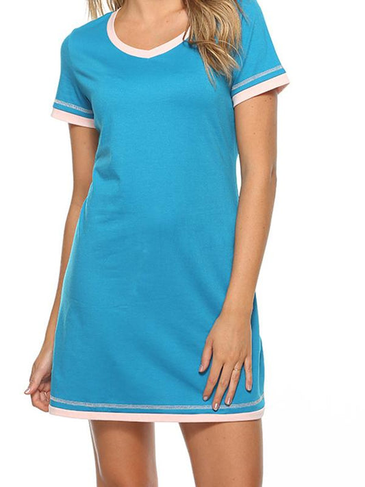 Patchwork Round Neck Short Sleeve Maternity Pajamas Casual Mini Dress