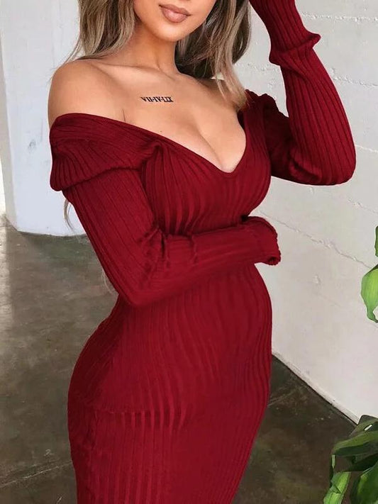 Seindeal Paid Off Shoulder Bodycon Long Sleeve Fashion Formal Maternity Midi Dress Fall