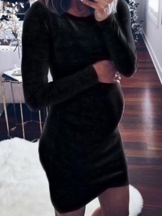 Pleuche Zipper Band Collar Pregnant Bodycon Maternity Dress