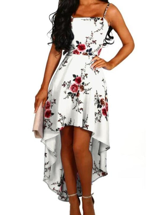 Floral Print Irregular Belt Maternity For Babyshower Spaghetti Strap High-low Vintage Midi Dress