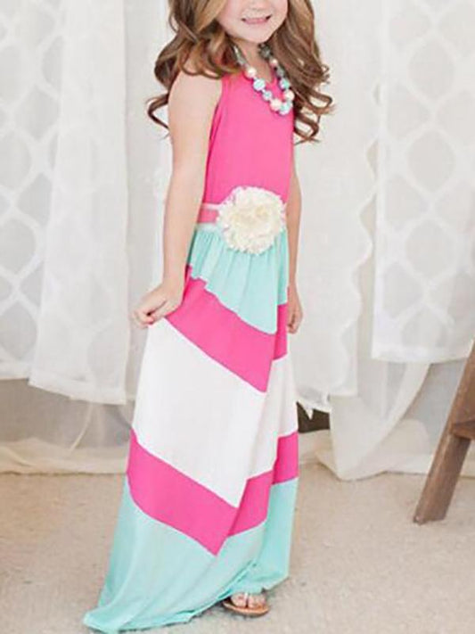 Striped Patchwork Mommy and Me Outfits Baby Shower Fashion Maxi Dress