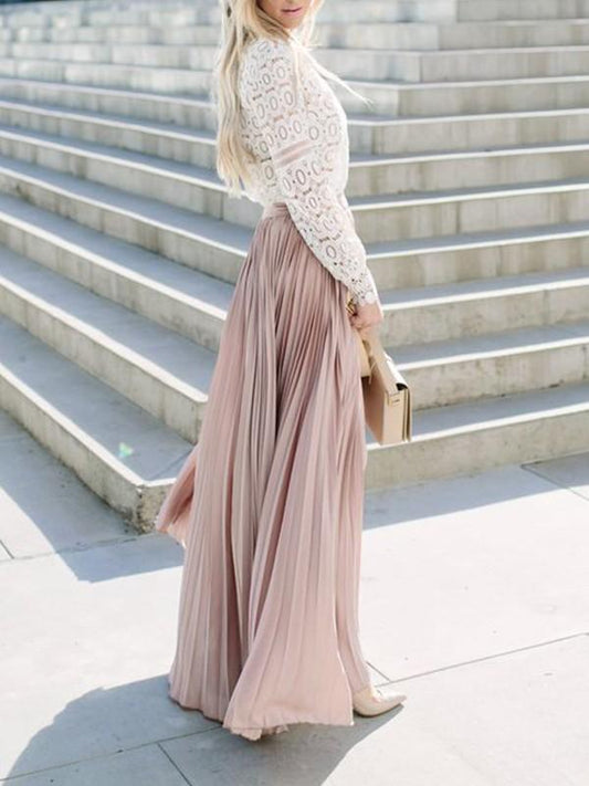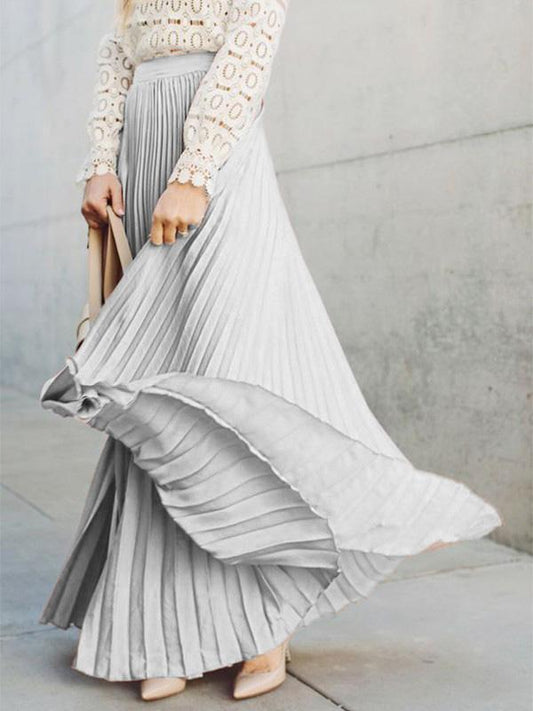 Gray Pleated High Waist A-Line Elegant Bohemian Skirt Long Party Pleated Skirt Maxi Skirt Beach Skirt