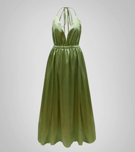Green Pleated High Waist A-Line Elegant Bohemian Skirt Long Party Pleated Skirt Maxi Skirt Beach Skirt