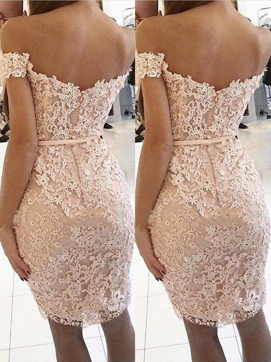 Lace Off Shoulder Boat Neck Short Sleeve Bodycon Tight Elegant Mini Dress Party Cocktail Dress