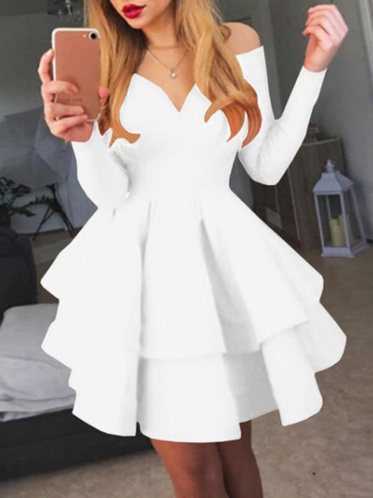 Solid Color Draped Double Deck Boat Neck Long Sleeve Mini Dresses Women's Party Dress