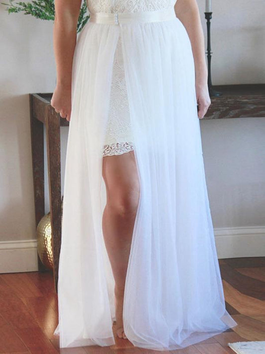 Patchwork Lace Side Slit Long Elastic Waist Women's Fashion Tulle Skirt