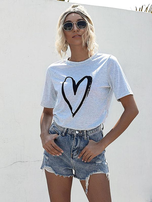 Seindeal T-shirt Tops Top Print Round Neck Short Sleeve Women Fashion