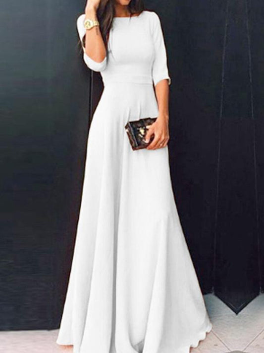 Seindeal White Draped Round Neck 3/4 Sleeves Elegant Maxi Dress Ball Gown Evening Dress