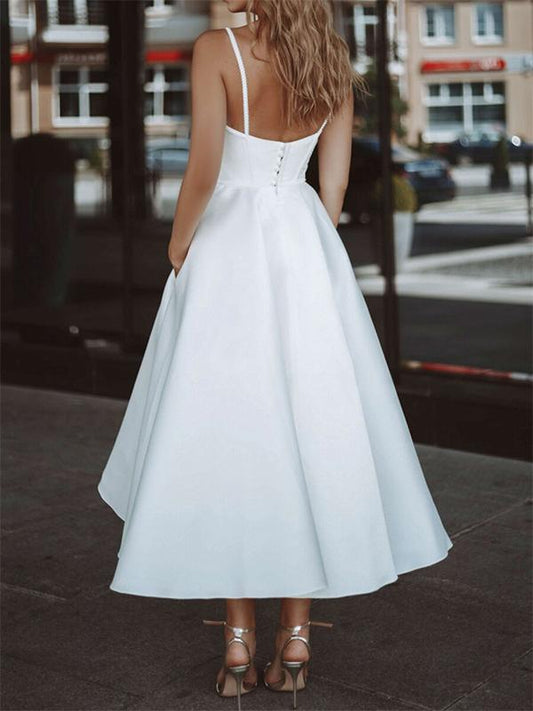 Backless Boat Neck Spaghetti Straps Women's Maxi Dresses Wedding Dress