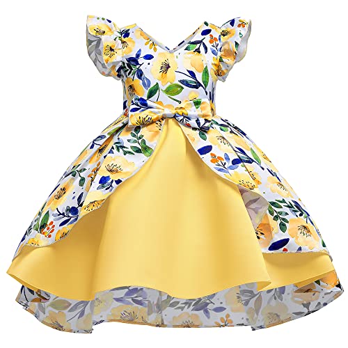 Flower Girl Dresses for Wedding Birthday Pageant Tea Party Ruffles Layered Floral Formal Dresses 2-10Years