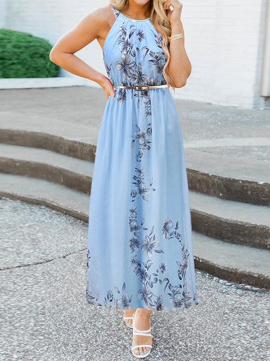 Floral Halter Round Neck Sleeveless Women Maxi Dresses Elegant Dress Summer Dress