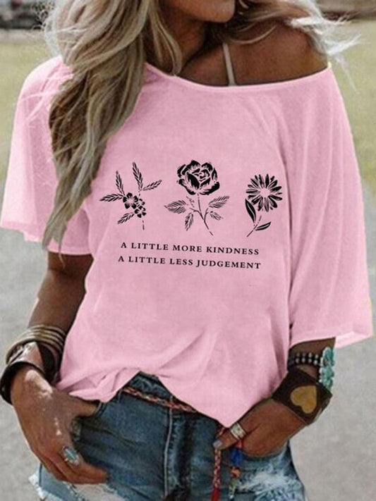 Floral Print Irregular Oversize Round Neck Short Sleeve Women's T-Shirt