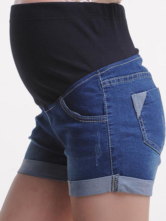Seindeal High Rise Stretch Pockets Buttons Denim Maternity Short Jeans Plus Size