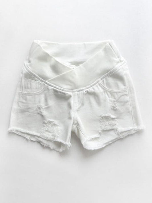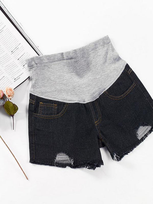 Momnfangcy Pockets Buttons Ripped Destroyed Casual Denim Shorts
