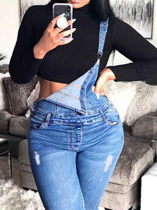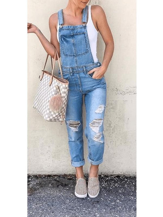 Ripped Destroyed Pockets Long Maternity Overall Pants