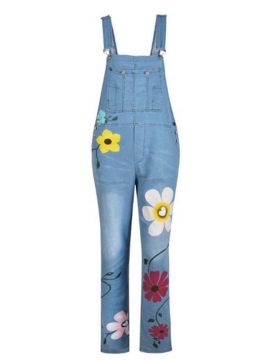 Seindeal Flowers button pockets with straps jeans jumpsuit denim dungarees women long jumpsuit