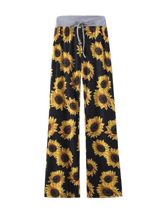 Sunflowers Drawstring High Waisted Pajama Palazzo Long Pants