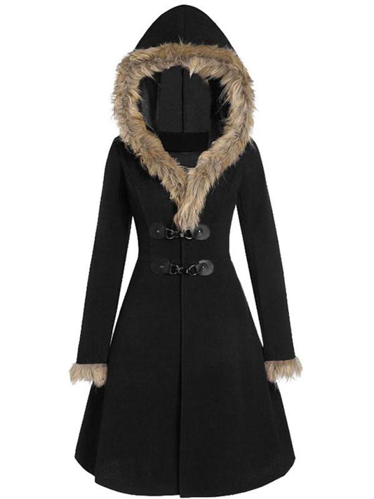 Seindeal Patchwork Buttons Fur Fashion Outfits Winter Clothes Maternity Hoodie Dress Coat