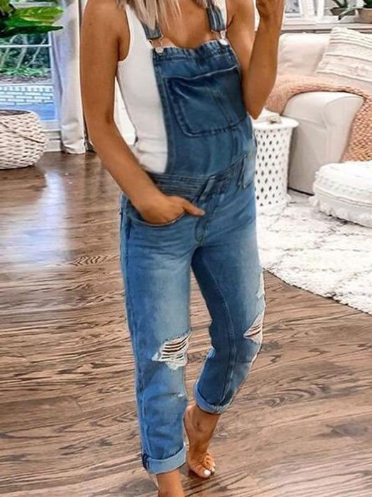 Ripped Destroyed Pockets Long Maternity Overall Pants
