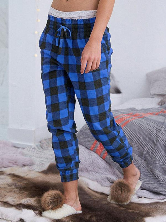 Seindeal Red-Black Plaid Drawstring Maternity Long Pajama Trousers Grid