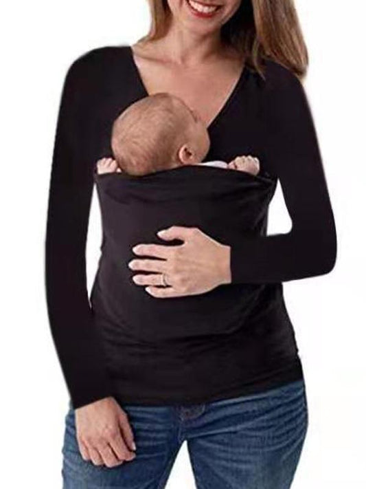 Seindeal Long Sleeve Kangaroo Pockets Baby Bag Carrier Maternity T-Shirt