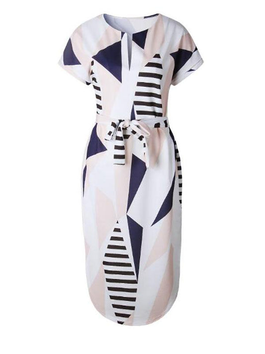 Color Block Striped Irregular Belt Maternity For Babyshower Vintage Midi Dress