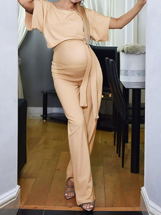 Seindeal Solid Wide Leg Palazzo Pants Belt One Piece Long Maternity Jumpsuit for Workwear