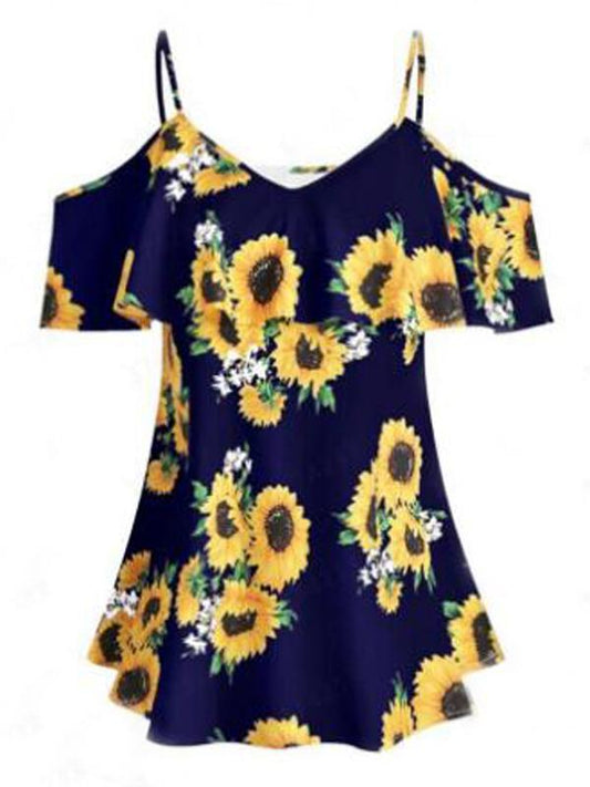 Sunflowers Ruffle Cut Out Spaghetti Strap Plus Size Maternity T-shirt