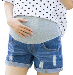 Women Plus Size Maternity Shorts Jean Over The Belly Stretch High Rise Comfy Blue Distressed Pregnancy Shorties Summer