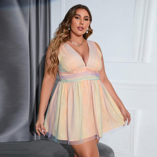 Seindeal Gradient Rainbow Flowy Elegant Photoshoot Mini Plus Size Women Dress for Evening Party