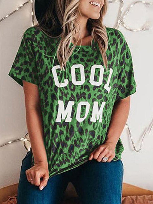 COOL MOM Letter Print Leopard Comfy Round Neck Short Sleeve Maternity T-Shirt