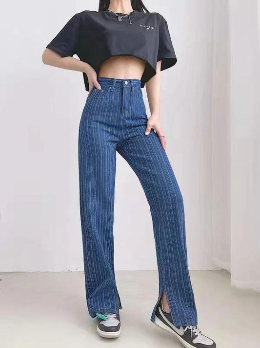 Pockets Slit High Waist Women's Boyfriend Jeans