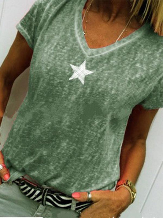 Short-sleeved fashion t-shirt with V-neck and galaxy print