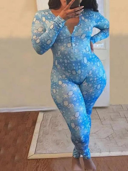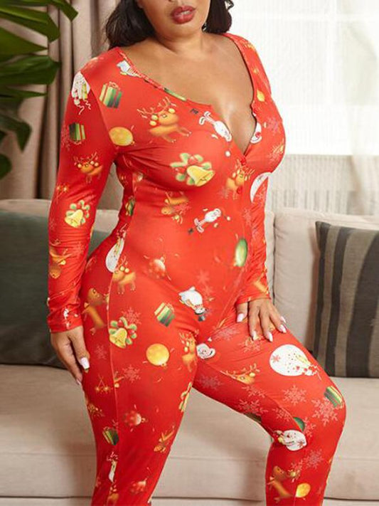 Cartoon Maternity Christmas Plus Size Onesie Pajama Long Jumpsuit