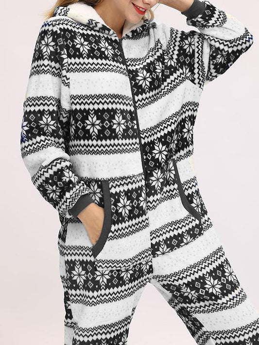 Christmas Flannel Snowflake Print Hooded Pajama Maternity Jumpsuit
