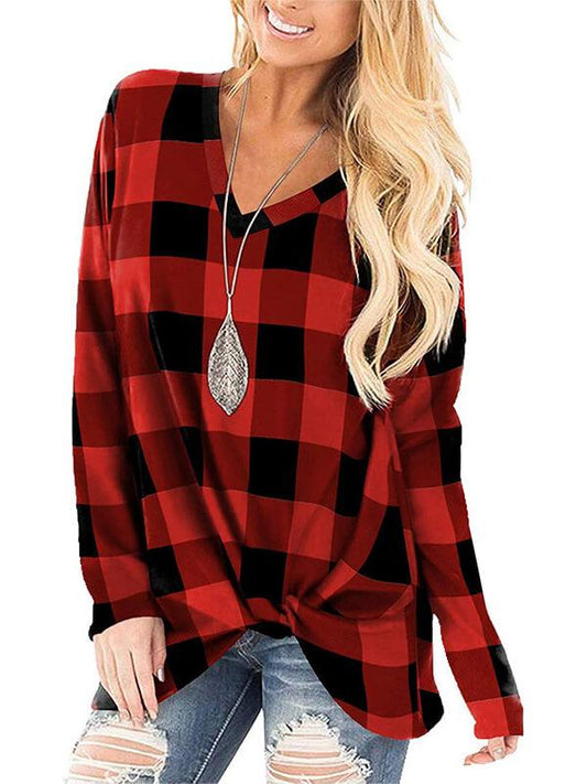 Seindeal Buffalo Plaid Christmas V-Neck Long Sleeve Maternity Pullover Sweatshirt