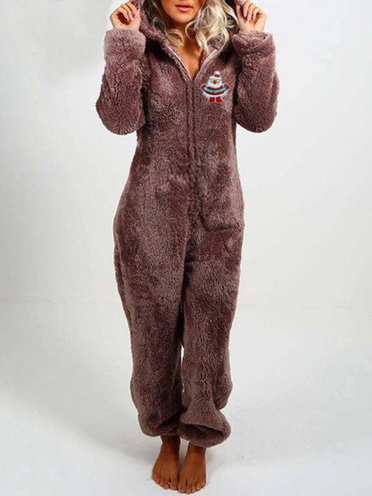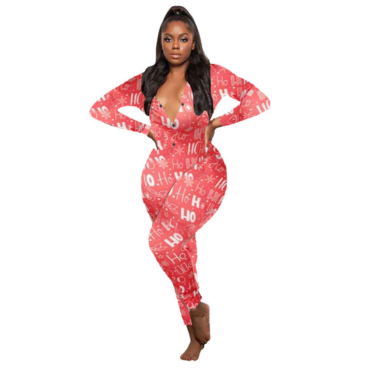 Zipper Plus Size Long Sleeve Christmas Maternity Cute Jumpsuit