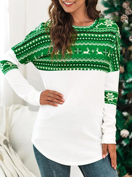 Geometric Elk Print Round Neck Long Sleeve Christmas Maternity T-Shirt