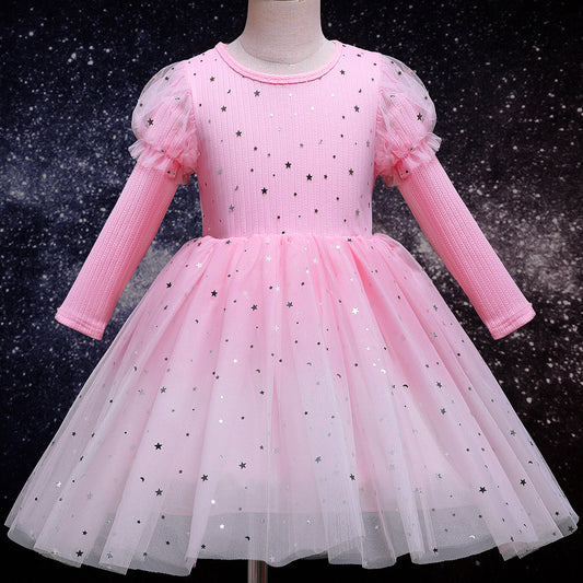 Toddler Girls Rainbow Pageant Dresses Long Sleeve Sparkly Tutu Princess Gown for Birthday Christmas Wedding Party 2-10Years
