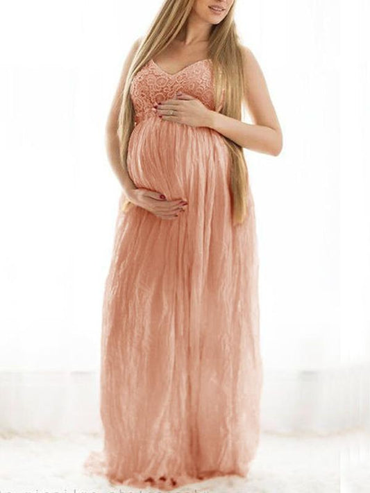 Lace Backless Pleated Spaghetti Strap V-neck Wedding Maternity Maxi DressRegular price $34.99 USDRegular priceUnit price per$40.99 USDSale price $34.99 USDSale