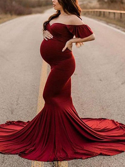 Seindeal Burgundy Ruffle Off Shoulder Mermaid Maternity Photoshoot DressRegular price $39.99 USDRegular priceUnit price per$45.19 USDSale price $39.99 USDSale
