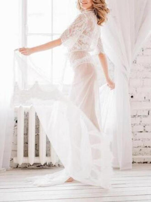 Seindeal Floral Lace Deep V-neck Half Sleeve Baby Shower White Maternity Photoshoot DressRegular price $25.99 USDRegular priceUnit price per$25.99 USDSale price $25.99 USD
