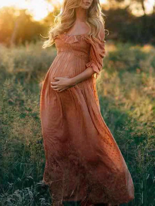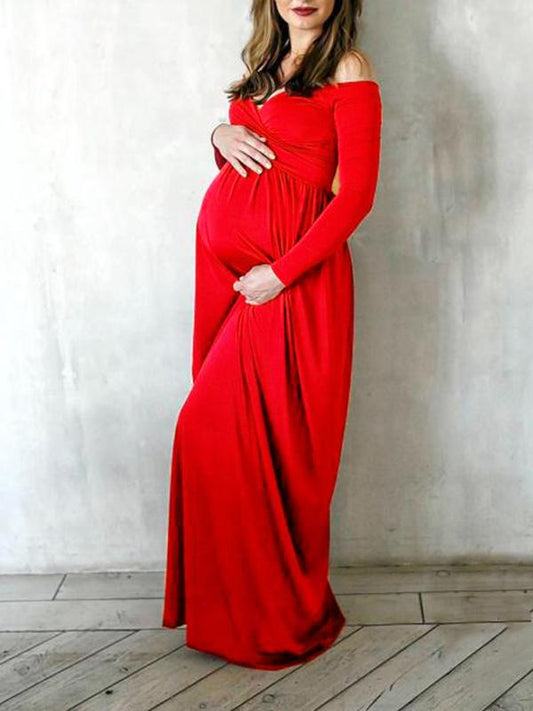 Solid Color Off Shoulder Bodycon Mermaid Photoshoot Maternity Maxi DressRegular price $40.41 USDRegular priceUnit price per-